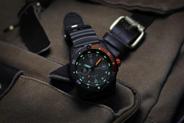 All the Luminox Bear Grylls Survival watches feature Bear Grylls’ logo and motto “Never Give Up” on the dial, as well as a special two-tone caseback adorned with Grylls’ signature and “Never Give Up” in bright orange. The collection also comes with an orange compound crown for improved grip. The orange color found throughout all the series is the color of Bear Grylls.
