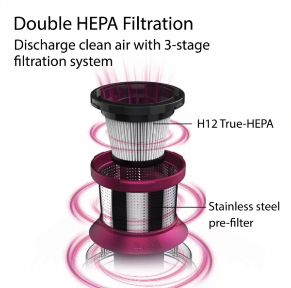 HEPA Filtration : Yes, double HEPA, 3-stages