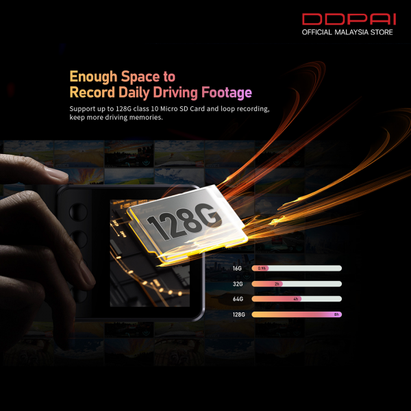 Storage : Micro SD Card Storage, Max 128gb, Loop Recording