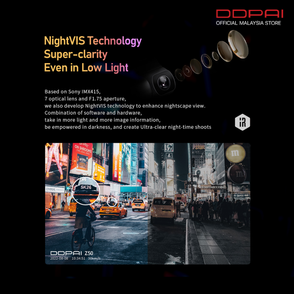 By combining DDPAI Z40 Dash Cam‘s built-in GPS with a G-sensor and 3-axis gyro, Sense Reality provides you with additional information such as vehicle’s speed, steepness of the road and many more during playback.