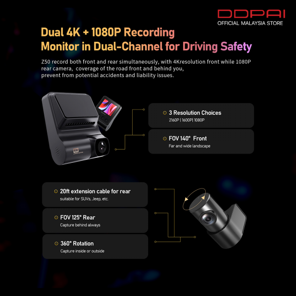 DDPAI Z50 4K 2160P Dash Cam GPS Front + Rear Cam