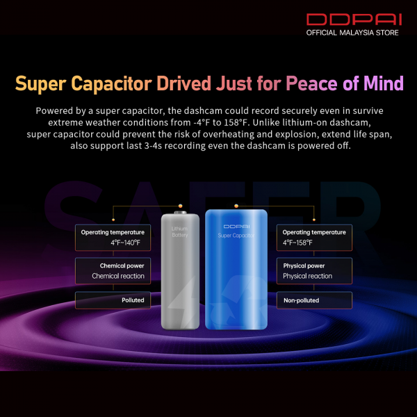 Super Capacitor, Collision Sensor, Loop Recording, NightVis Technology
