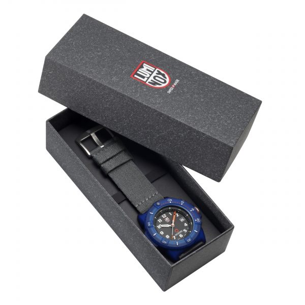 The New ECO Tide 8900 Series uses 100% recycled material for the case, strap, and bezel. The case, bezel and strap are all manufactured with #TIDE material. It uses a Swiss Made precision quartz movement, equipped with the Luminox Light Technology, meaning that it is visible in any conditions without having to be charged by an external source.