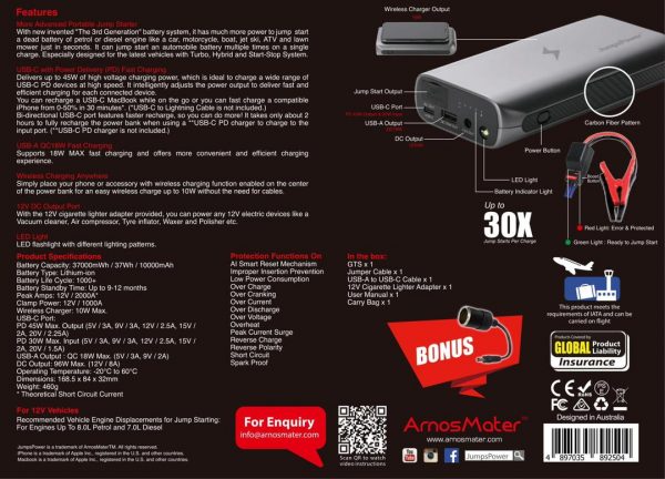 With new invented “The 3rd Generation” battery system, it has much more power to jump start