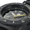 The Navy SEAL 3600 Series comes in different color variations, with this watch being the black with black and yellow accents. It is a carbon-compound watch that features a hydraulically-stamped dial protected by a sapphire crystal with anti-reflective coating and a magnifier for the date display.